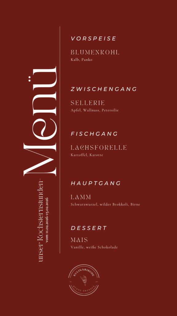 Dieses besondere Pop-up-Restaurant befindet sich im historischen Salon des Schauspielhauses Dresden, direkt am Postplatz. Unser Küchenchef Robert hat mit viel Leidenschaft und Kreativität ein exklusives 5-Gang-Menü für Sie zusammengestellt.